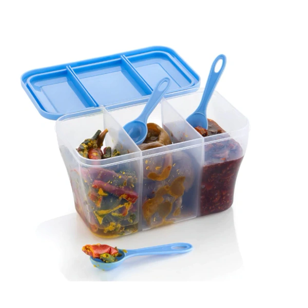 Kitchen Multipurpose Air-tight 3 Sections Storage Containers / Pickle (Achar) Jar - 750 ml with 3-spoon for each section