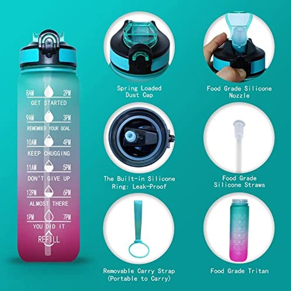 - Innovative Time Marker: Our 1 Litrewater bottle with time marker feature a unique inspirational statement and a timer to help you track your daily water intake and encourage you to drink more. This water bottle is ideal for individuals who need a little additional motivation to drink more water to help their skin, immunity, and metabolism. n